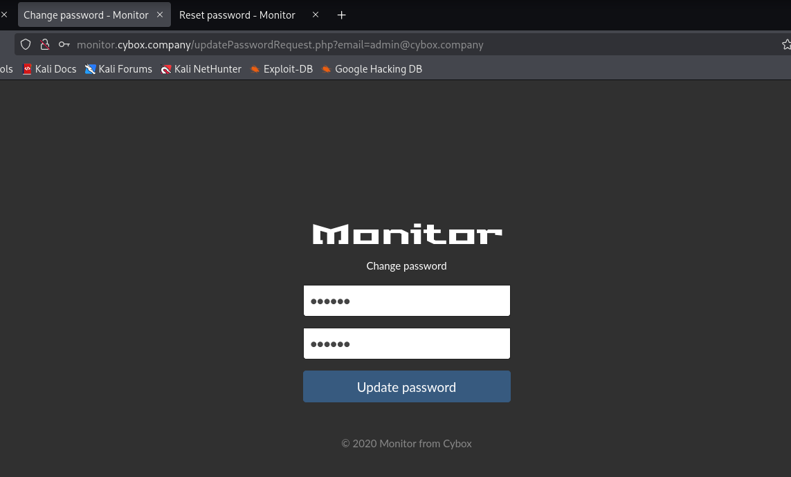 给了一个链接http://monitor,cybox.company/updatePasswordReguest.php?email=aaa@cybox.company