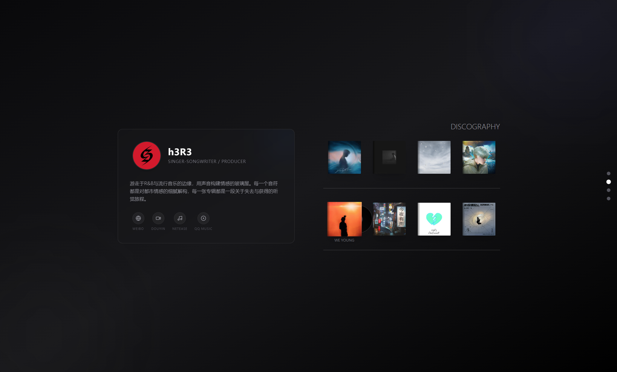 h3R3 个人主页是一个典型的高视觉冲击力 Web 项目。源码结构清晰,充分利用了 Vite 的构建特性简化了资源管理。