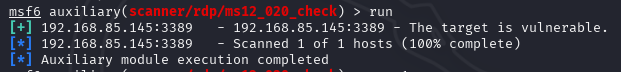 Flag:use auxiliary/scanner/rdp/ms12_020_check