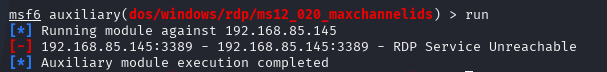 命令:use auxiliary/dos/windows/rdp/ms12_020_maxchannelids
