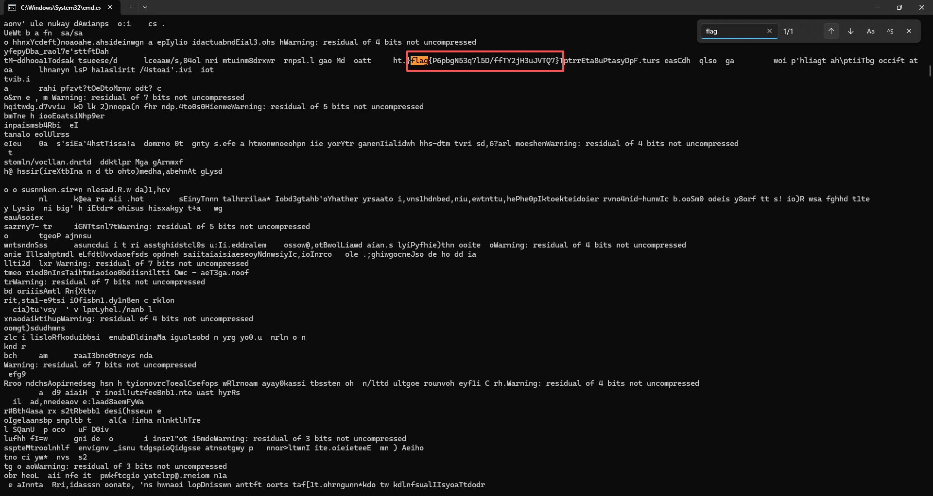 out = os.system('C:\AppSoftInstall\SNOW.EXE -p "{}" -C ./CTF/snow.txt'.format(line))三、结果