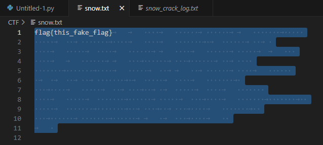 发现文件中有许多空格和缩进等不可见内容,再看文件名称是snow,这是一种隐写方式: