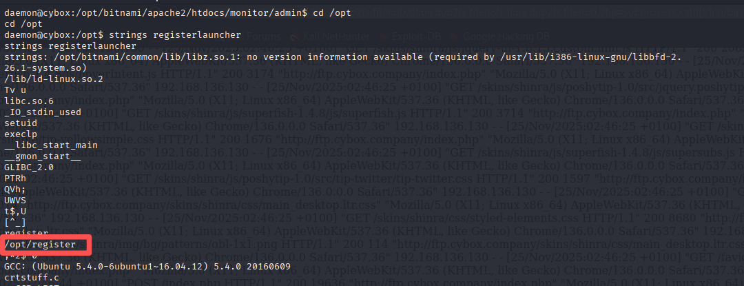 我们将其转为字符串查看文件内容,切换至其文件所在目录 cd /opt 在控制台输入 strings registerlauncher