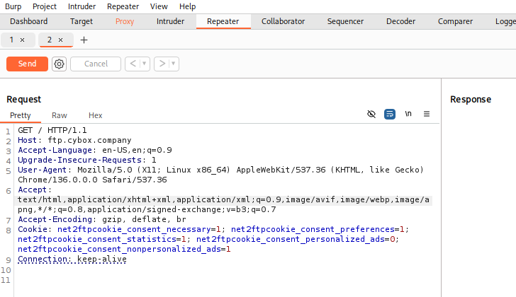 接着,打开工具 BurpSuitePro 打开抓包,访问FTP站点,然后改包