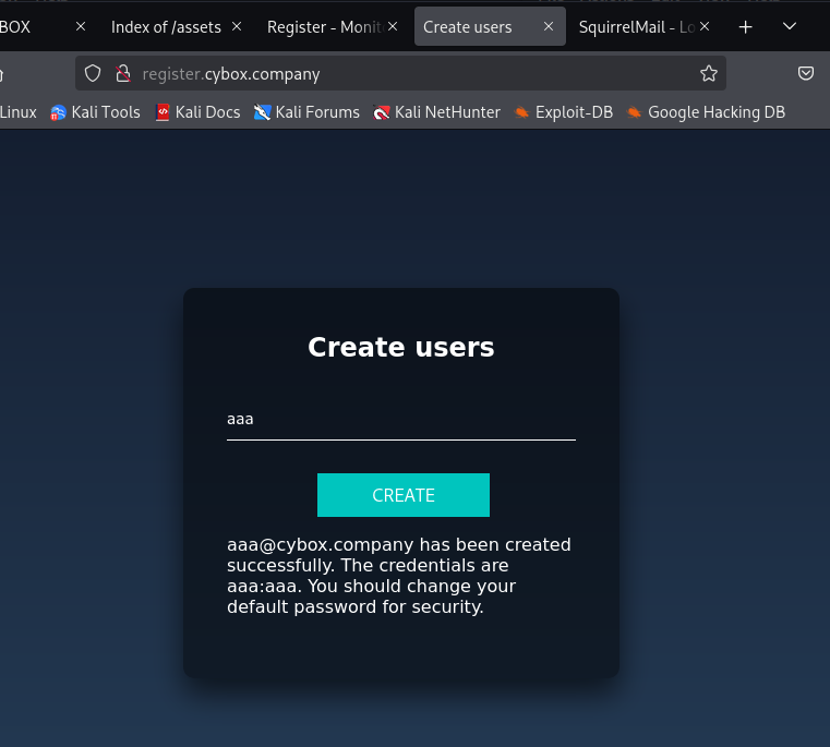 接着切换至 register.cybox.company 注册同名用户aaa