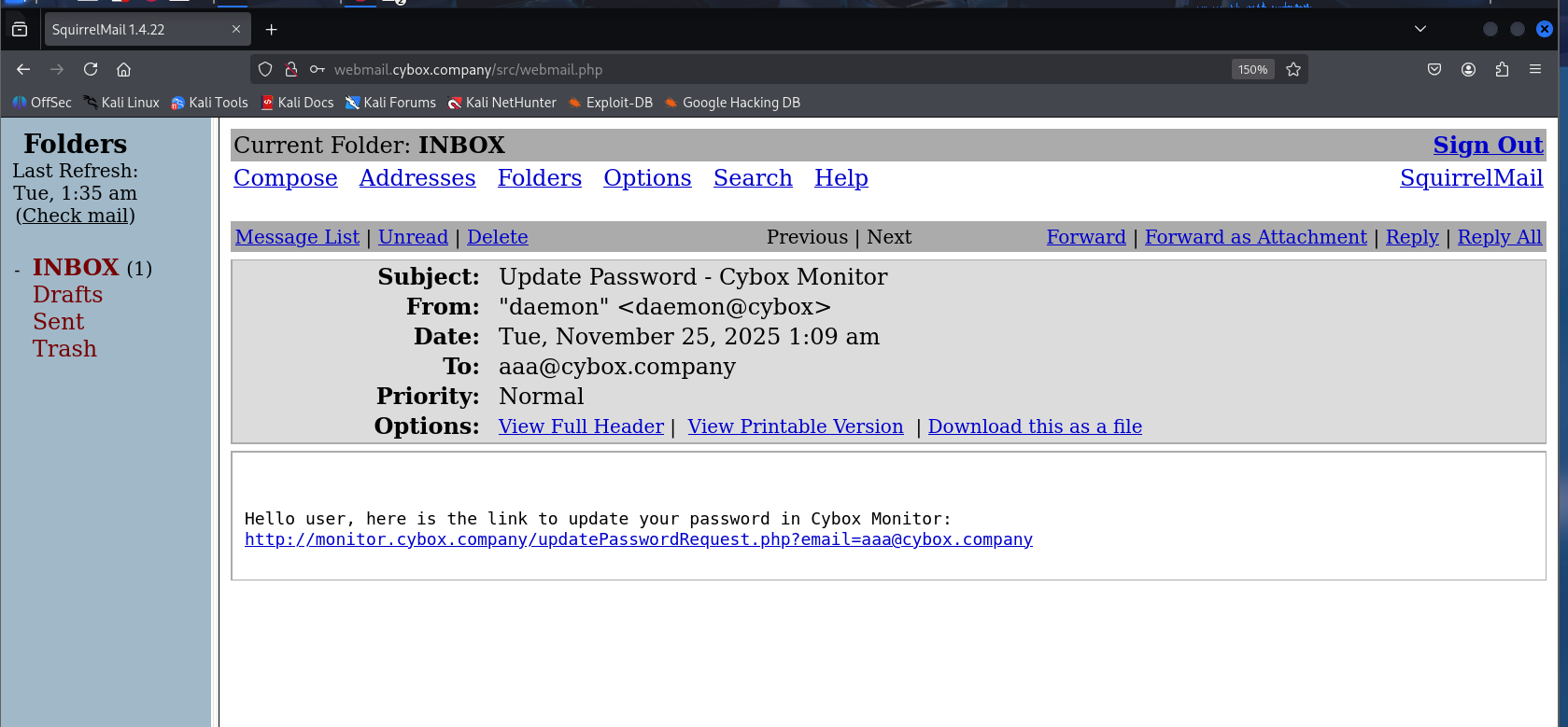 给了一个链接http://monitor,cybox.company/updatePasswordReguest.php?email=aaa@cybox.company
