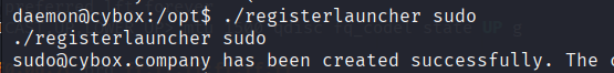 接着输入 ./registerlauncher sudo 创建一个名为 sudo 的用户,此举是为了混淆 sudo 命令与 sudo 用户名