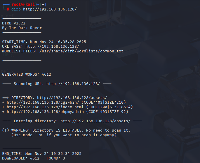 dirb http://192.168.136.128/