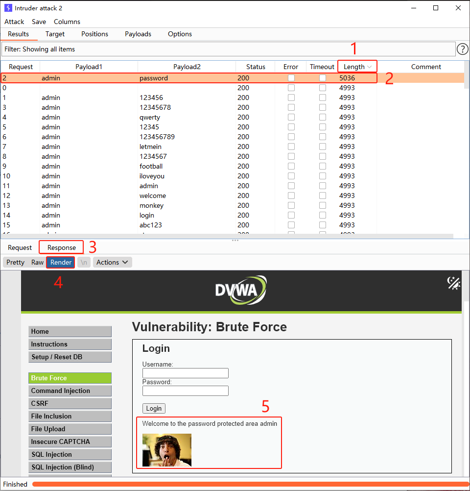点击 Length 进行排序,选中最上面的,然后点击 Response ,再点击 Render 可以看到密码正确