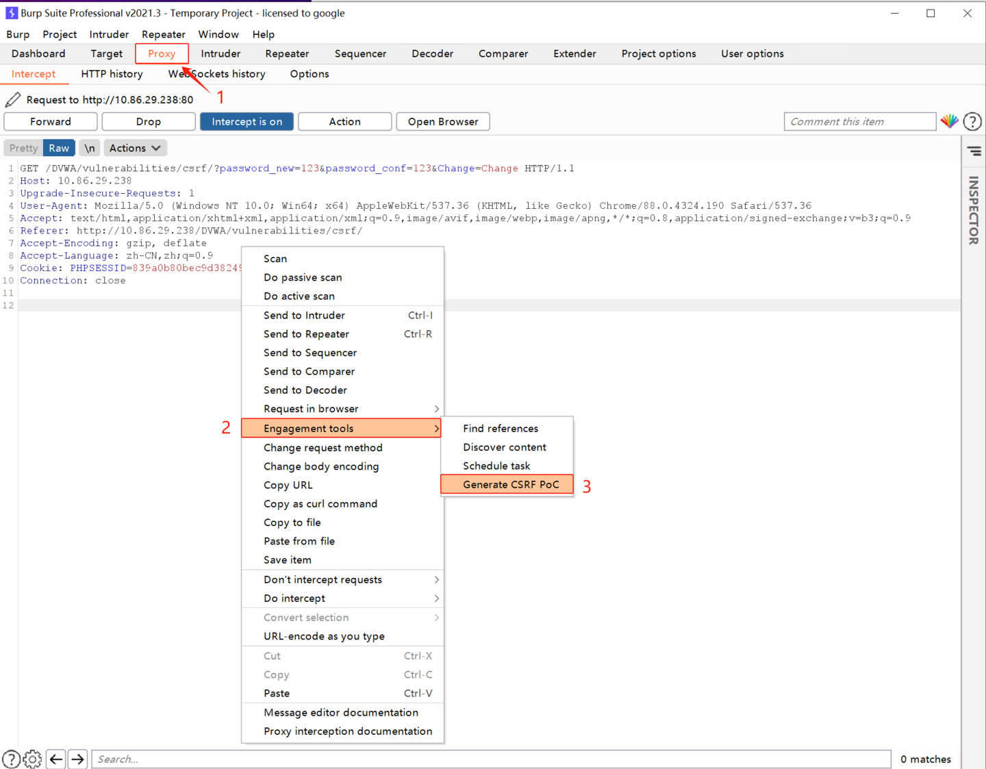 右键选择Engagement tools —> Generate CSRF PoC,在新窗口点击Copy HTML
