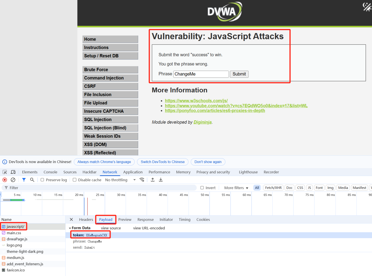 }生成 token 的函数被放在单独的 js 文件中,生成的方式是将 "XX" + phrase 变量的值 + "XX"字符串反转作为 token。比如:vincent —> XXtnecnivXX