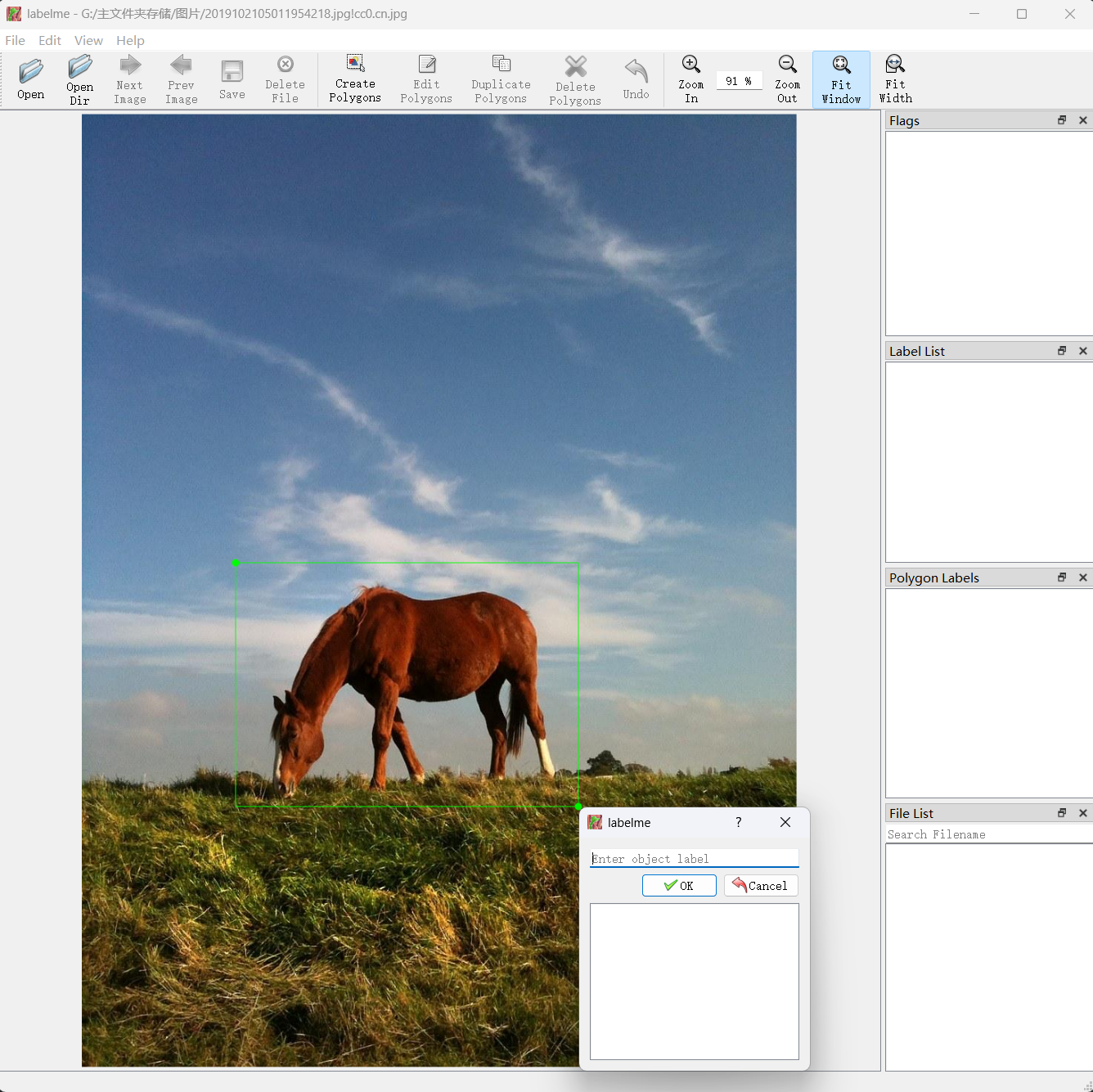 点击 Open 打开一张图片,然后按住 Ctrl + R 使用矩形标注编辑
