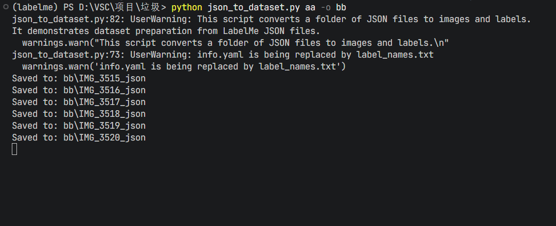 python -m labelme.examples.dataset_tool.json_to_dataset [输入目录名] -o [输出目录名]