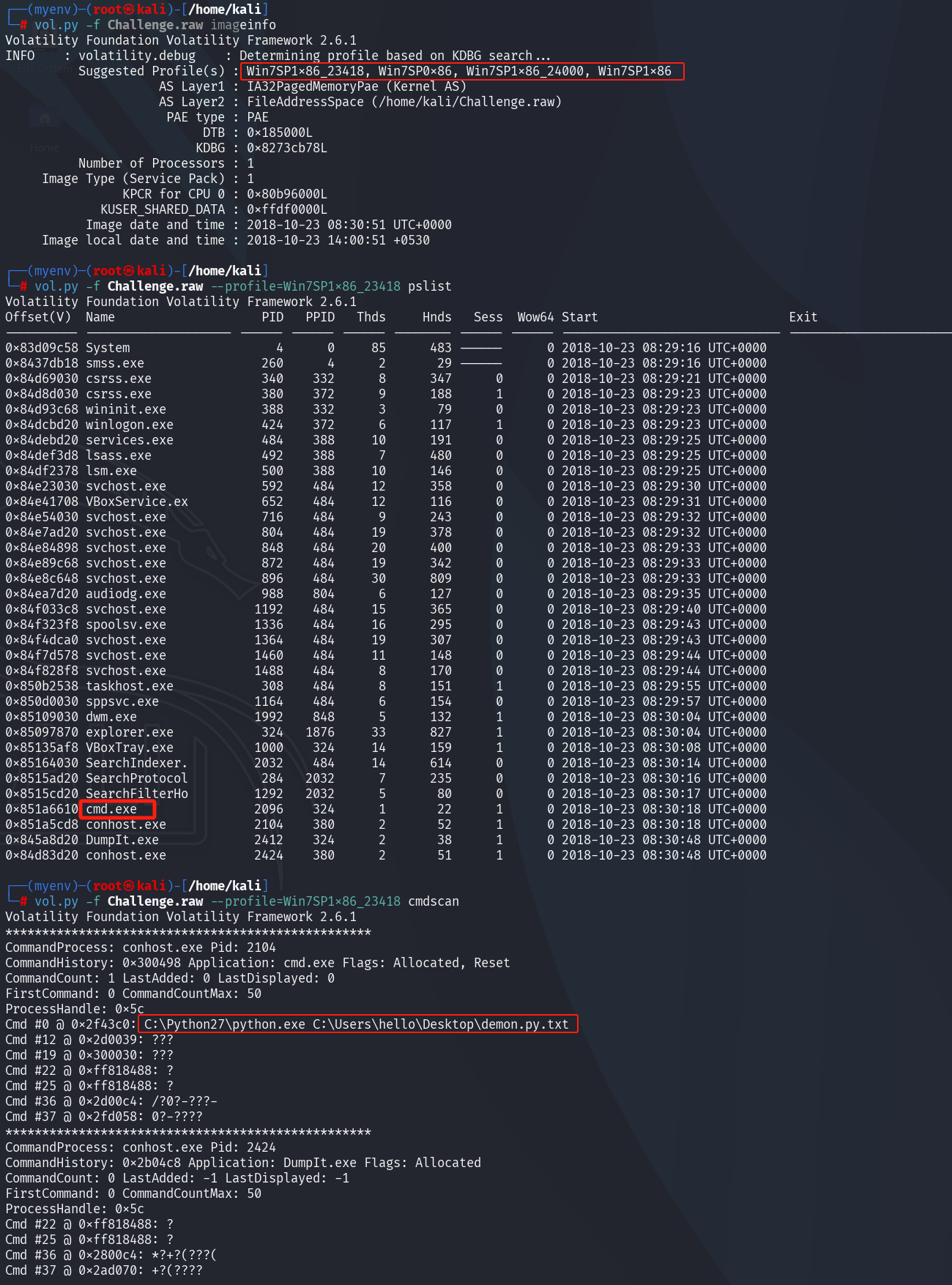 vol.py -f Challenge.raw --profile=Win7SP1x86_23418 cmdscan