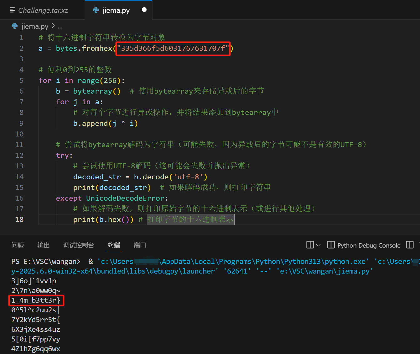 # 尝试将bytearray解码为字符串(可能失败,因为异或后的字节可能不是有效的UTF-8)