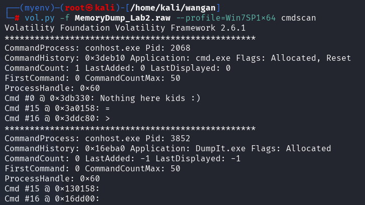 vol.py -f MemoryDump_Lab2.raw --profile=Win7SP1x64 cmdscan