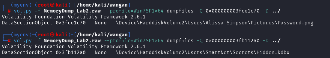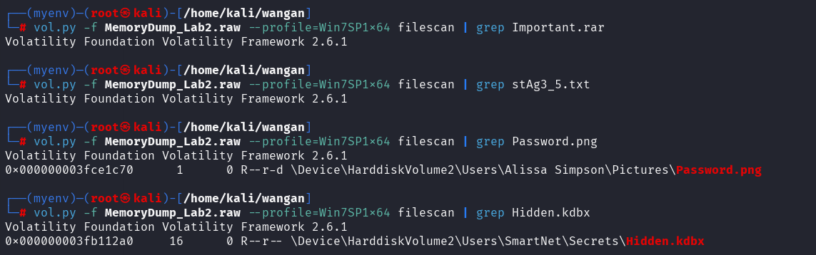 vol.py -f MemoryDump_Lab2.raw --profile=Win7SP1x64 filescan | grep Hidden.kdbx 发现只有最后两个有输出,只能找后面两个文件了