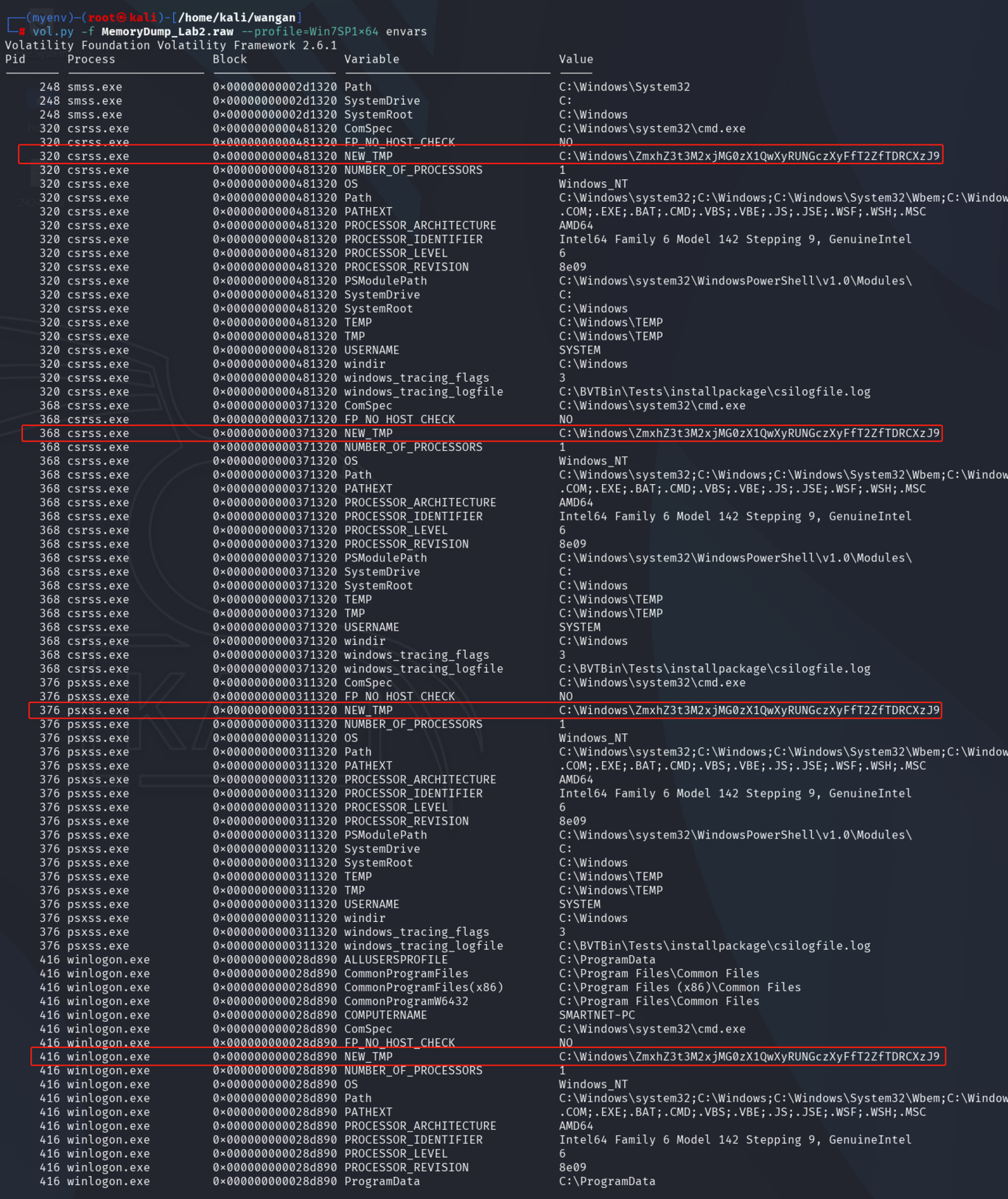 vol.py -f MemoryDump_Lab2.raw--profile=Win7SP1x64 envars