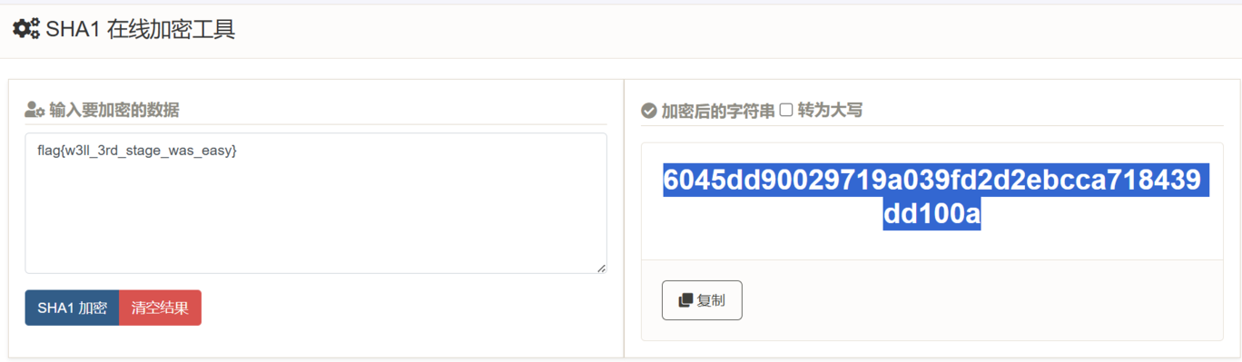 flag{w3ll_3rd_stage_was_easy}对其进行SHA1加密