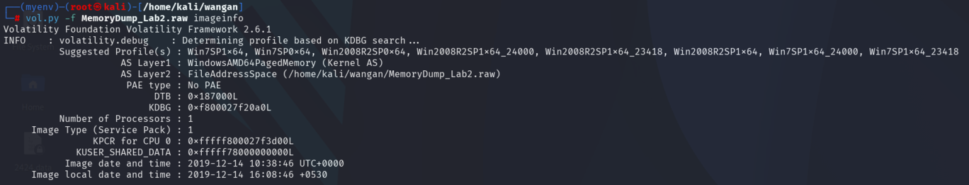 vol.py -f MemoryDump_Lab2.raw imageinfo