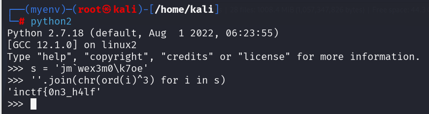 我们首先要对vip.txt中的文本进行base64解码为:jmwex3m0\k7oe,再进行3次XOR运算,最终拿到前半段flag:inctf{0n3_h4lf