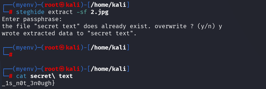 然后我们获取后半部分flag,打CTF的知道,steghide是一个图片或音频隐写工具