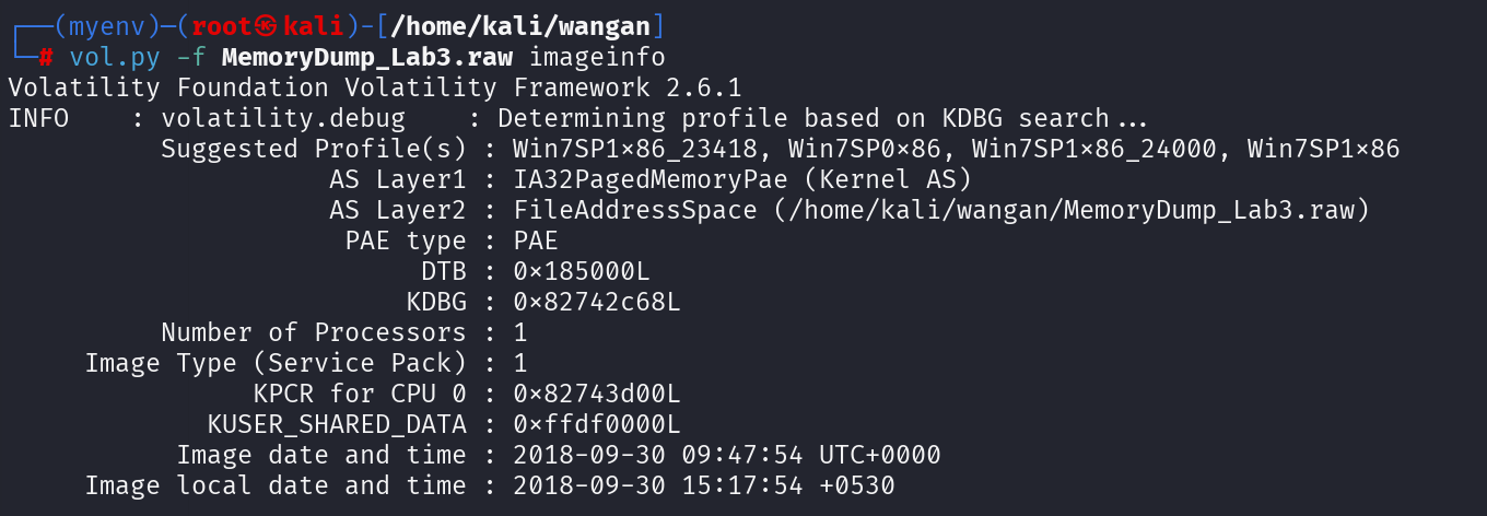 vol.py -f MemoryDump_Lab3.raw imageinfo