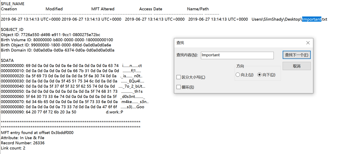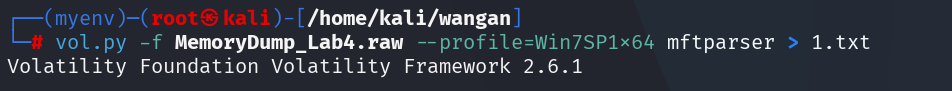 vol.py -f MemoryDump_Lab4.raw --profile=Win7SP1x64 mftparser > 1.txt将信息输出到文件中,然后打开文件后搜索