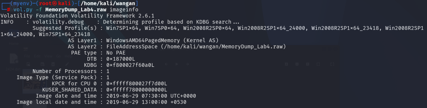 vol.py -f MemoryDump_Lab4.raw imageinfo
