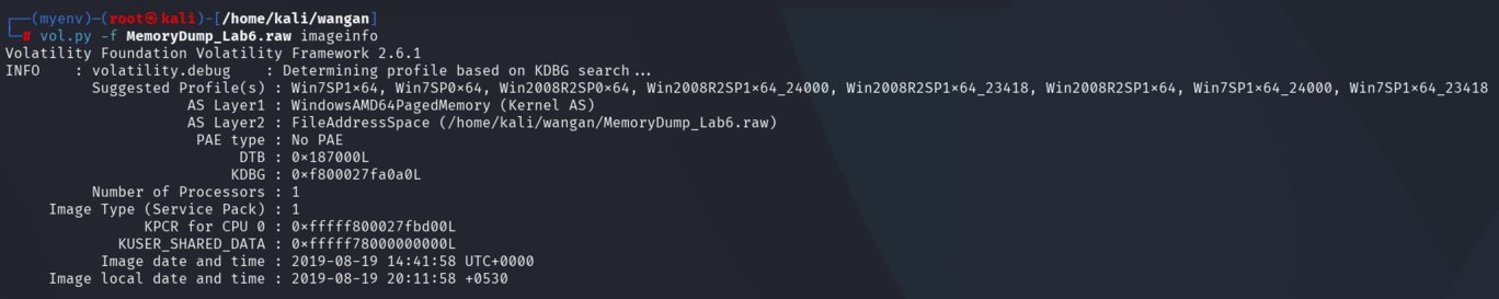 vol.py -f MemoryDump_Lab6.raw imageinfo