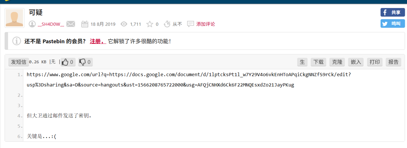 https://pastebin.com/RSGSi1hk:Pastebin是一个常见的代码分享平台,但也常被用于分享恶意代码或敏感信息。需要检查该链接的具体内容。