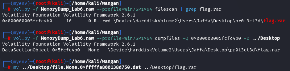 vol.py -f MemoryDump_Lab6.raw --profile=Win7SP1x64 filescan | grep flag.rar