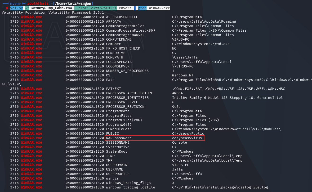 vol.py -f MemoryDump_Lab6.raw --profile=Win7SP1x64 envars | grep WinRAR.exe