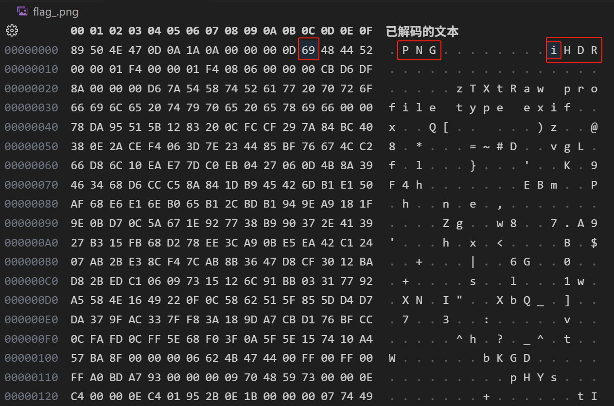 将这里的iHDR修改为IHDR,把69改为49即可打开图片