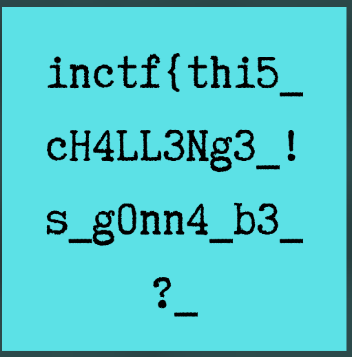拼接得到:inctf{thi5_cH4LL3Ng3_!s_g0nn4_b3_?_aN_Am4zINg_!_i_gU3Ss???}